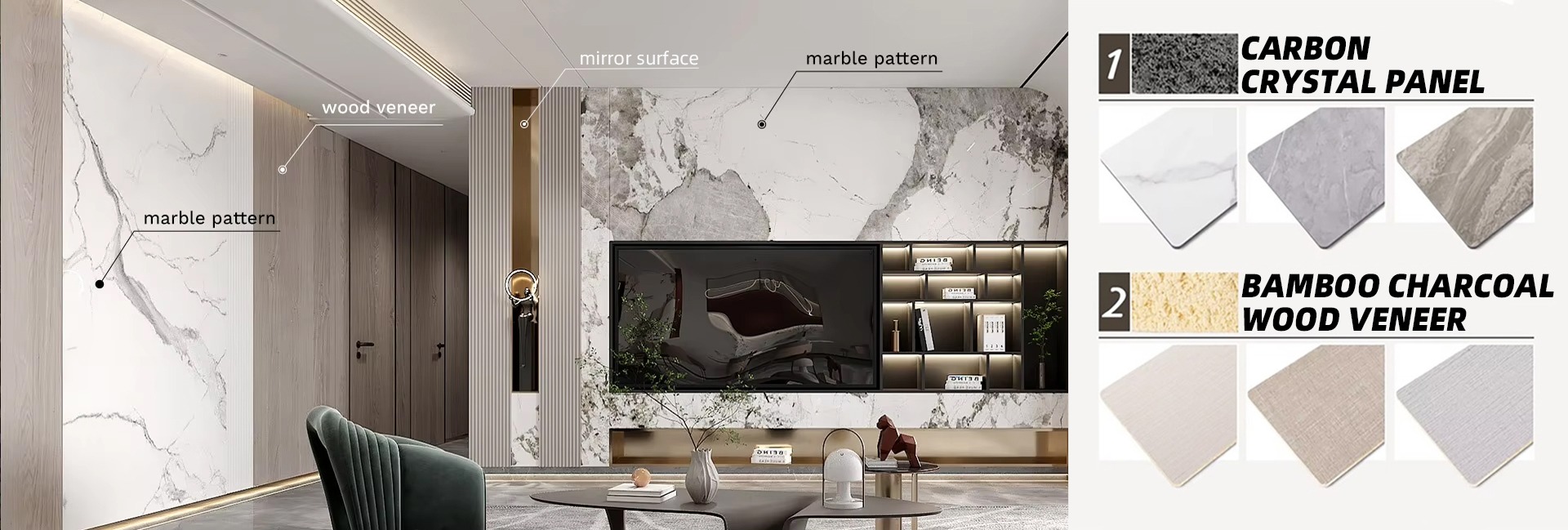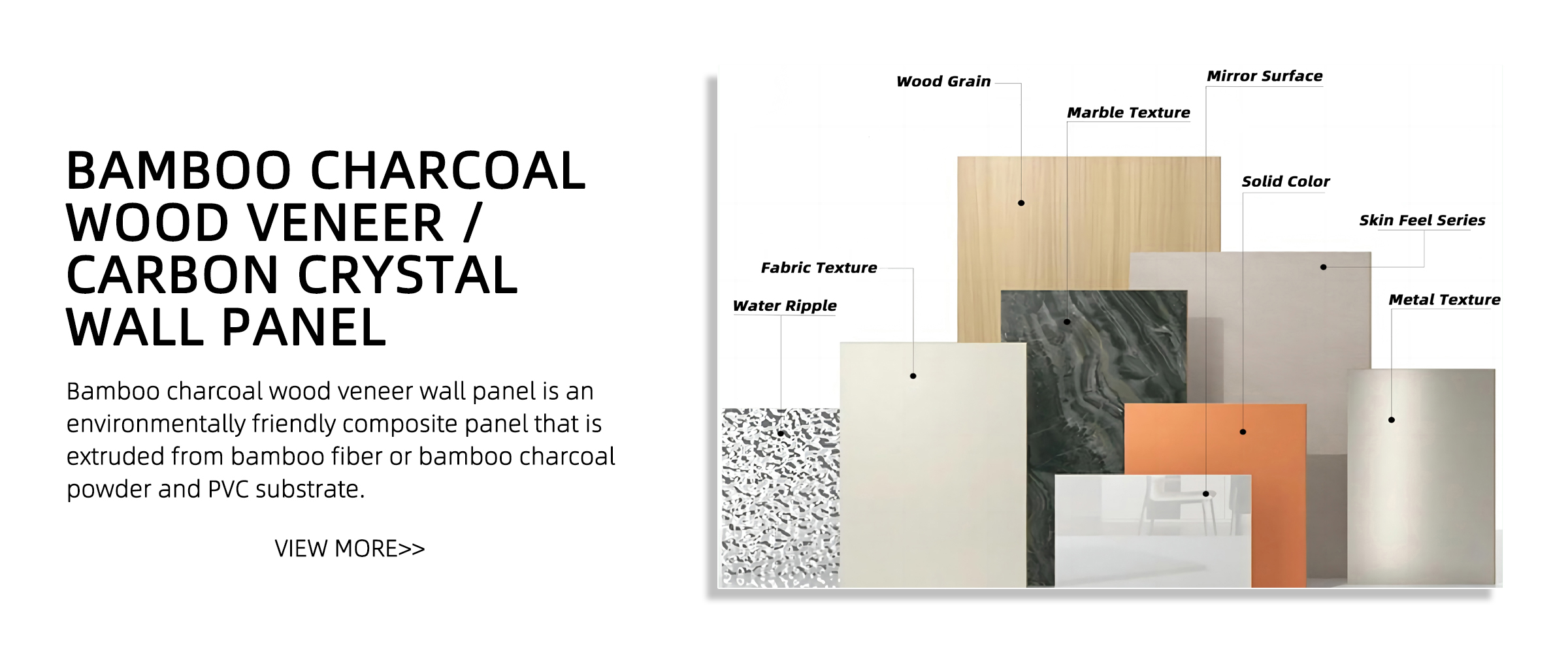Productos principales:Hoja de mármol PVC, panel de pared WPC, panel de pared de carbón de bambú, cubierta WPC, panel de pared de piedra PU